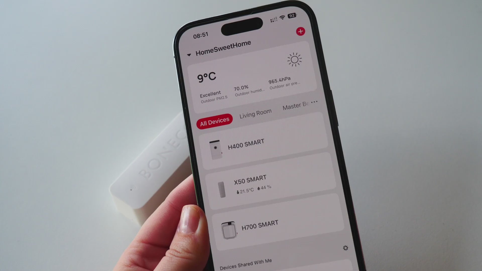L'app BONECO SMART offre un comando senza sforzo e una chiara comprensione del tuo ambiente interno in tempo reale.