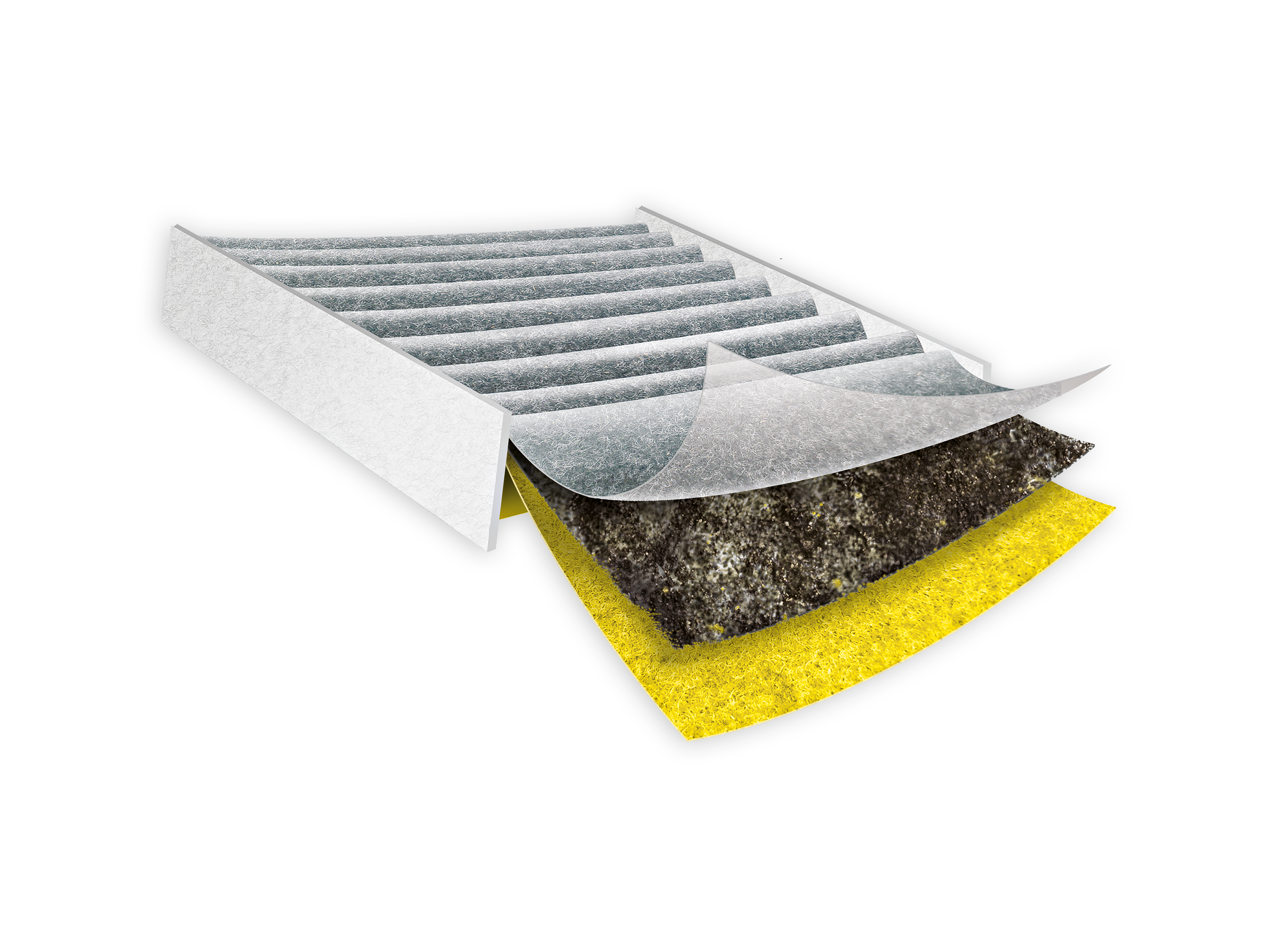 This high-performance filter medium reduces coarse particles such as dust, pollen or tyre abrasion as well as the smallest particles such as fine dust by almost 100%.