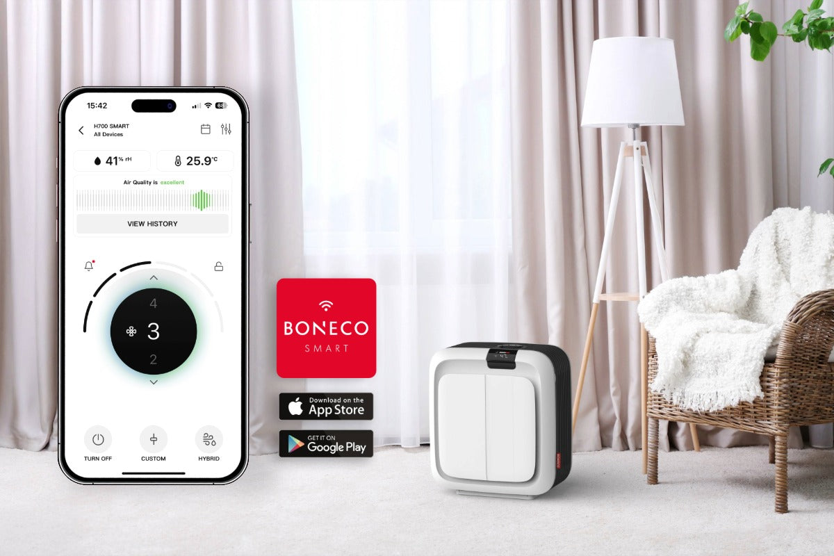 - The BONECO SMART app offers intuitive user guidance and navigation and an innovative timer