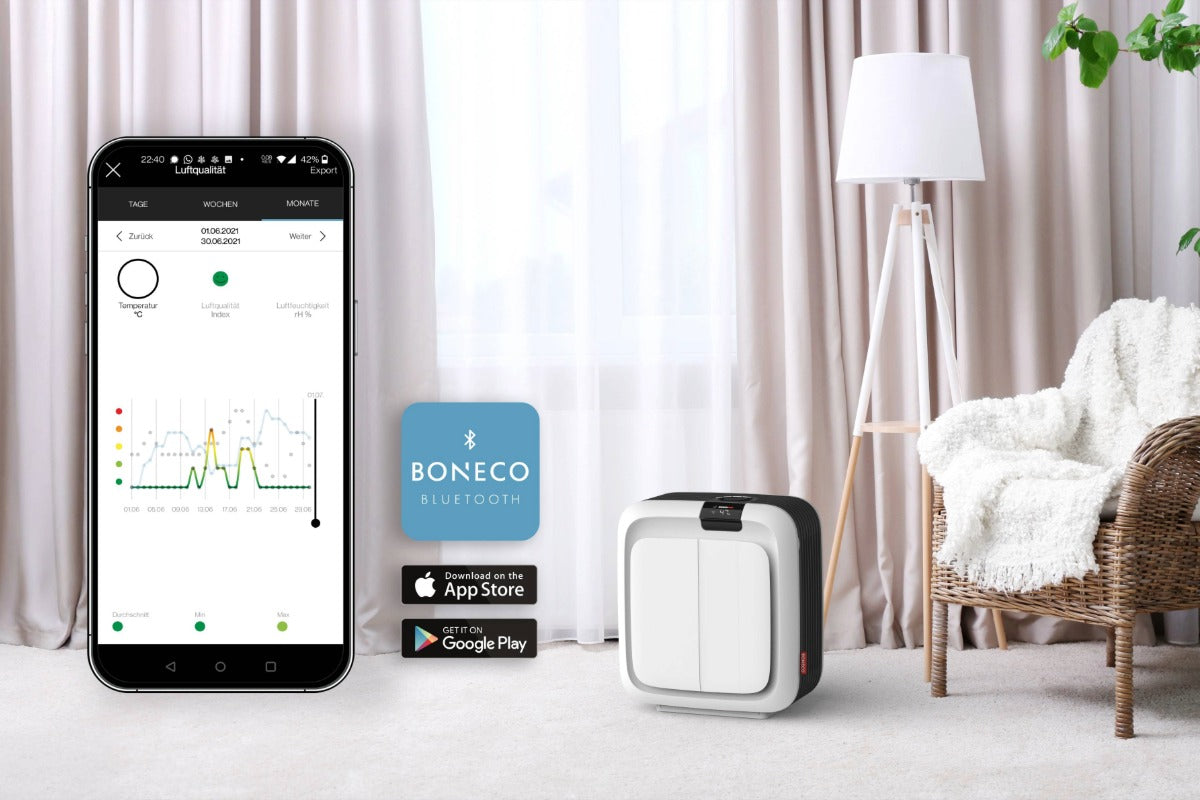 - The BONECO app offers intuitive user guidance and navigation and an innovative timer
